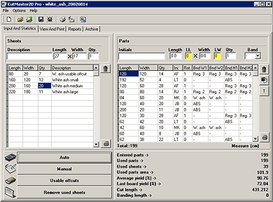 CutMaster2D se utiliza para generar las disposiciones optimizadas para el corte de los tableros hechos de todas las clases de materiales.